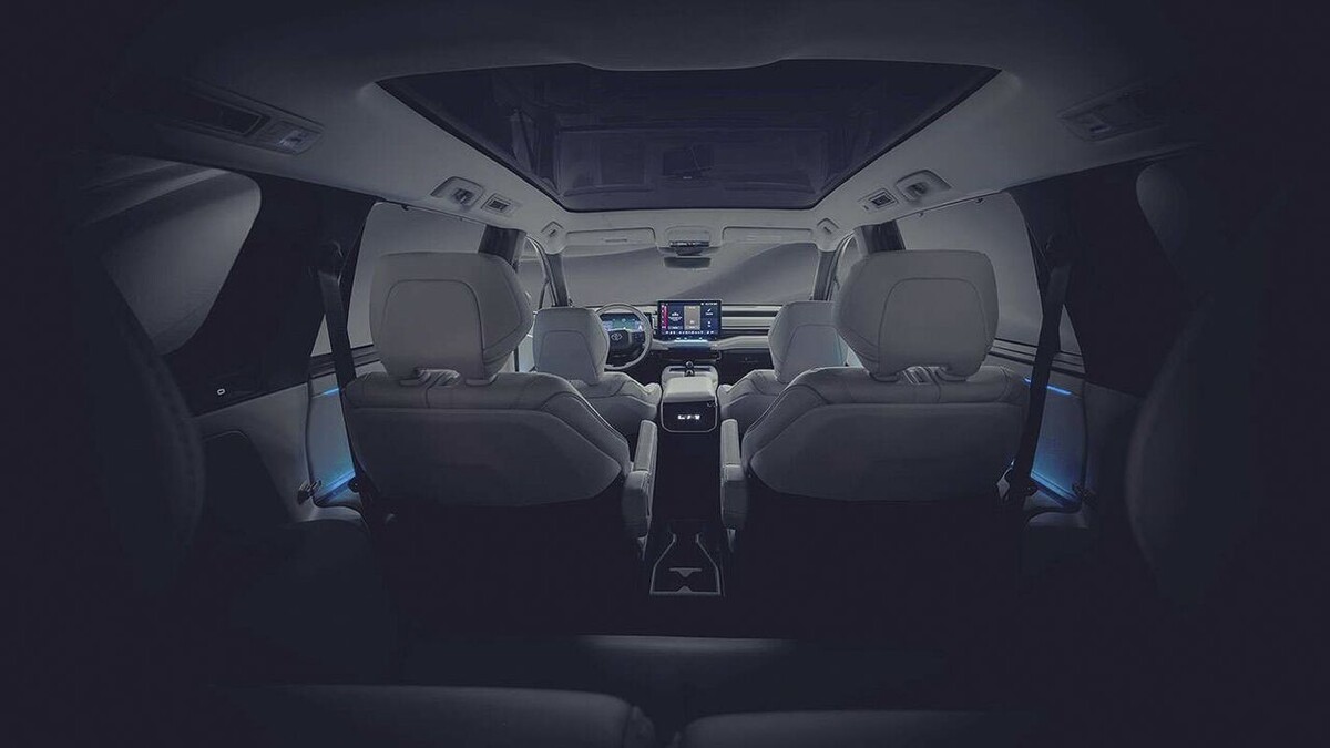 Японская компания Toyota, судя по всему, намерена и дальше удерживать статус автопроизводителя №1 в мире — уже шестой год подряд. Конкуренты не дремлют: даже BYD, который уверенно чувствует себя в Европе, готовит свои громкие премьеры на курс 2026 года. Однако в этот раз речь пойдет не о новом поколении Corolla, которого многие ждут. Свежие тизеры намекают на куда более «семейный» и крупный проект. Читать на сайте: Toyota показала тизеры большого электрического кроссовера с 6-местным салоном. Премьера — 10 февраля 2026 года Если ранее публике дали лишь намек на корму — две тонкие световые полосы у заднего стекла и рейлинги, прямо указывающие на SUV-формат, — то теперь Toyota раскрыла интерьер. Снимок сделан с третьего ряда: там, как и на втором, установлены два раздельных кресла. Это означает компоновку на шесть посадочных мест и сразу три ряда сидений. По габаритам новинка выглядит заметно крупнее, чем bZ4X Touring, показанная в прошлом году. Раздельные кресла и заметный запас простра