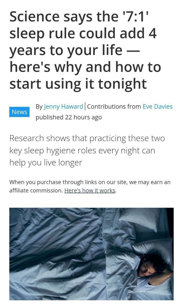 🛌 Рубрика: Общество Сон — это не просто отдых, а ключ к долголетию. Учёные выяснили, что соблюдение режима сна важнее его продолжительности. Те, кто ложится спать в одно и то же время, снижают риск ранней смерти на 31%, даже если спят всего 4-6 часов. Как работает правило «7:1»? Выберите временное окно в час (например, 23:00-00:00) и ложитесь спать только в него минимум 5 раз в неделю. Даже если спите всего 4-6 часов, это лучше, чем хаотичный график. Почему это важно? Сбитый режим сна приводит к гормональному сбою, который разрушает организм сильнее, чем недосып. Налаженный график подавляет гормон голода, уменьшает вечерние переедания и улучшает иммунитет. Бонусы: память становится чётче, реакция улучшается на 12%, а всё это — без таблеток и допинга. Самое время наладить режим и начать жить дольше. 💤 Сон — это инвестиция в здоровье. Не упустите шанс. #здоровье #сон #долголетие #режим_сна #исследования Читать на сайте ➡️ Подписаться
