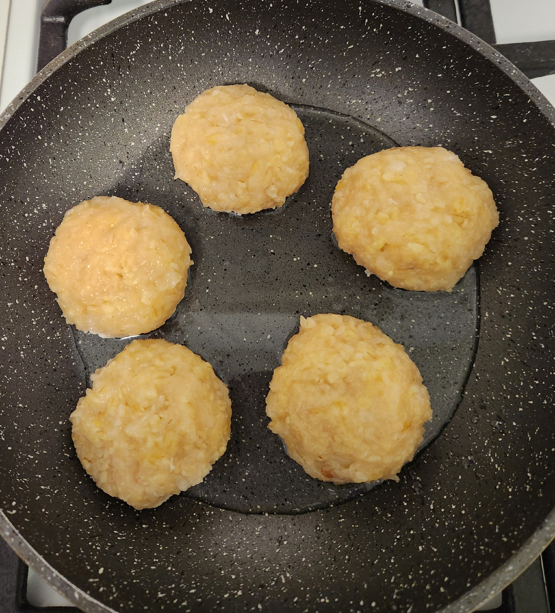 Ингредиенты: 400 г филе куриной грудки, 150 г булгура, 1 яйцо, 300 г очищенной тыквы, куркума, соль, зелень.