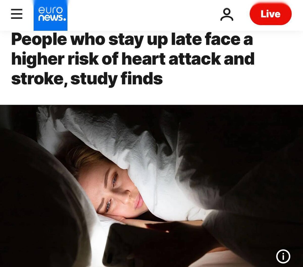 » По данным исследования это происходит из-за нарушения циркадных ритмов: биологические часы «сов» не совпадают с естественным световым циклом или привычным распорядком. К рискам добавляются нездоровое питание, курение и недостаток сна; при этом у женщин связь позднего отхода ко сну с ухудшением здоровья сердца выражена сильнее. 👉🏻Новости №1 в Ростове 💌Прислать новость/фото Ростов Папа теперь в Ⓜ️🅰️❌
