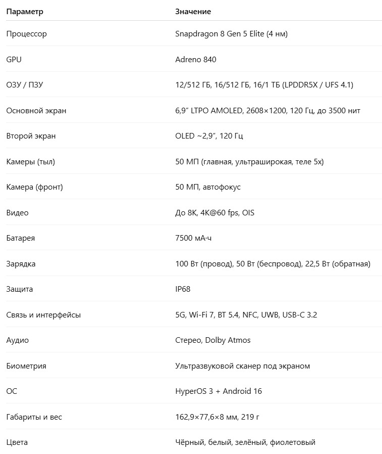Модель выделяется камерами Leica, аккумулятором на 7500 мА·ч и флагманским чипом Snapdragon 8 Gen 5 Elite.
