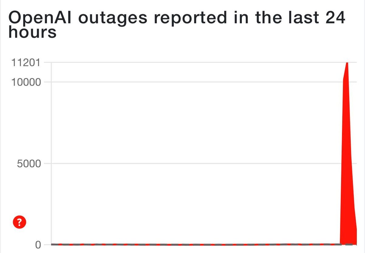 У ChatGPT зафиксированы массовые сбои по всему миру. Пользователи сообщают о невозможности подключиться к серверу. За последний час поступило около 10 000 жалоб. https://dzen.ru/id/5c0e38ff46ef5c00aaa80527