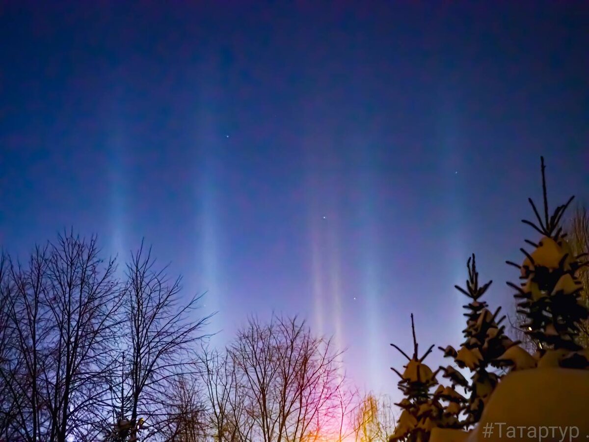 🌌 Световые столбы украсили ночное казанское небо