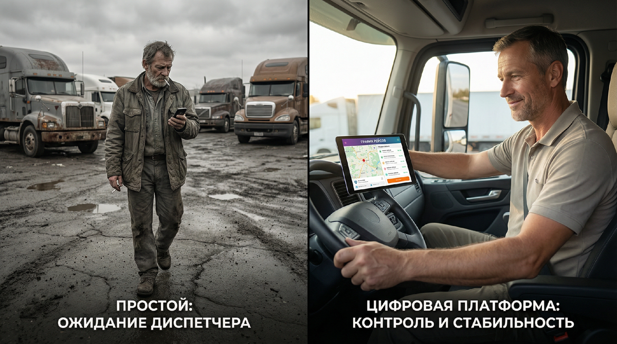 Представьте: вы всю жизнь работали через одного диспетчера. Завтра он переходит в платформу — там быстрее, выгоднее и безопаснее. А вас система не видит: нет рейтинга, отзывов, цифровой истории. Для рынка вы становитесь невидимкой.