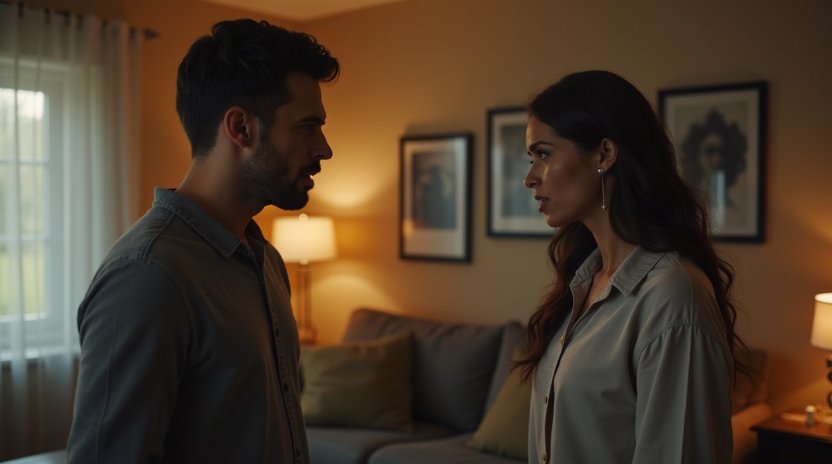 Дмитрий медленно опустился в кресло напротив, не отрывая от неё взгляда. В комнате повисла тишина, нарушаемая только тихим тиканьем часов на стене. За окном московского вечера шумел город: проезжали машины, где-то внизу сигналил таксист, но в их квартире всё словно замерло.