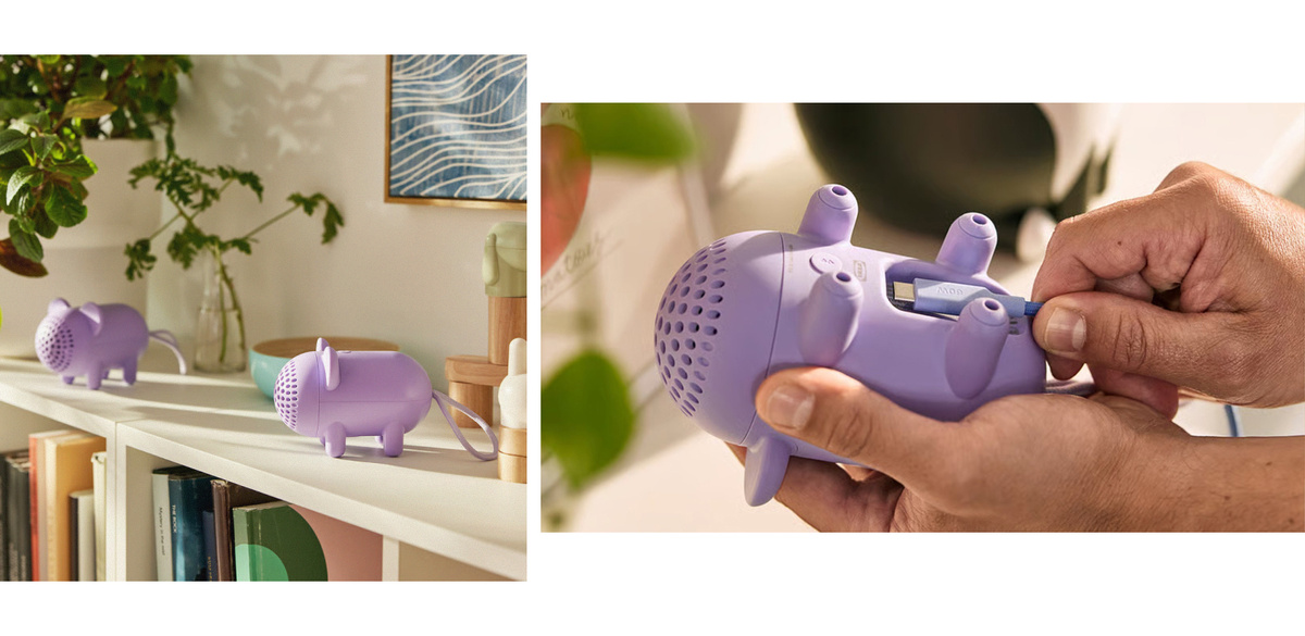 Шведский бренд выпустил колонку GREJSIMOJS с одним динамиком мощностью 2 Вт и поддержкой Bluetooth. Главной фишкой новинки стали уникальные форма и цвет — это сиреневое устройство небольшого размера с «ушками», «лапками» и «хвостиком», который служит для удобной носки. Сама компания называет форму мышиной, но пользователи видят в ней морскую свинку или шиншиллу. Колонка из детской линейки Grejsimojs защищена от пыли и влаги, а ее аккумулятора должно хватать до 24 часов на средней громкости. Внутри корпуса установлен полнодиапазонный излучатель диаметром 4 см. Максимальная громкость достигает 73,8 децибел — этого достаточно для прослушивания музыки в небольшой комнате. Однако для любителей более сильного звука производитель предусмотрел режим мультисистемы, через которую можно объединить несколько таких устройств. Сетку излучателя дизайнеры разместили на передней части, что создает эффект мордочки и особенно привлекательно для совсем юных ценителей музыки. Ритейлер предлагает включать н