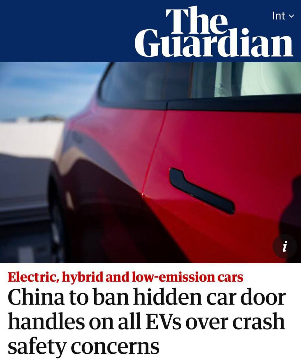 моделях. Изменения в правила внесли из-за ряда смертельных ДТП. Людей запирало в салоне после отказа электроники. Для понимания: сейчас скрытые дверные ручки ставят на 60% самых продаваемых электрокаров и гибридов в Китае. #автоновости