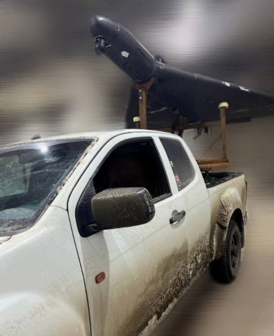 Подготовленный к запуску с пикапа дрон-камикадзе «Герань-2