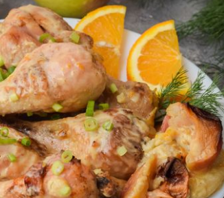 Бекон нарезать кубиками, положить в 3-литровую кастрюлю, накрыть крышкой и тушить 2 минуты. Добавить нарезанный лук - кубиками, морковь - соломкой, пастернак - кружочками. Накрыть крышкой и тушить в микроволновой печи на полной мощности около 5 минут до размягчения. Куриные ножки уложить слоем поверх овощей. Отцедить и просушить помидоры, добавить полную ложку нарезанной зелени петрушки. Положить поверх куриных ножек, а сверху - слой нарезанного кубиками картофеля. Накрыть крышкой и тушить в микроволновой печи в течение 25 минут. Проверить, готово ли мясо. Пока кастрюля стоит в печи, нарезать апельсин на крупной терке, залить кипятком и дать постоять. Слить воду, добавить немного зелени петрушки и выложить смесь на картофель. Закройте крышкой и готовьте еще 5 минут в микроволновой печи.