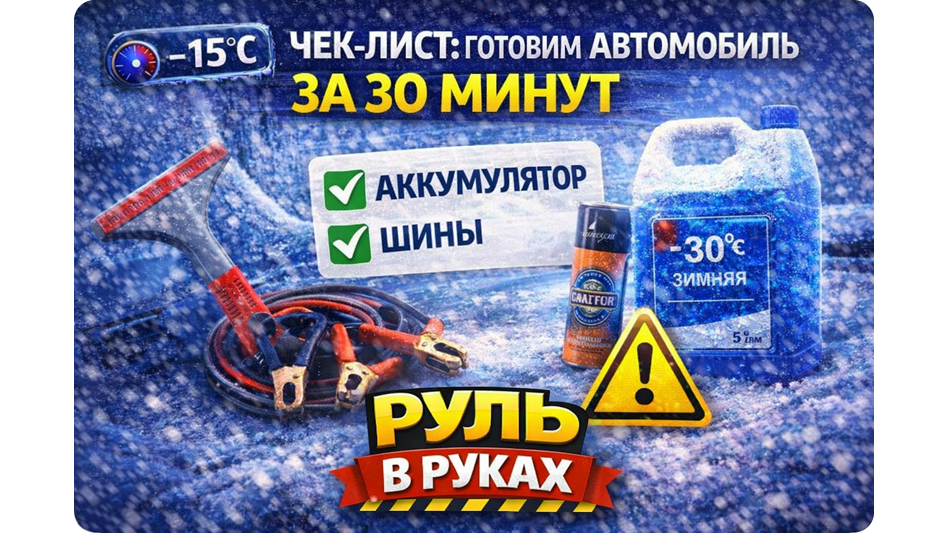 Зима — серьёзное испытание для автомобиля. Морозы, реагенты, перепады температур могут превратить небольшую неисправность в дорогостоящий ремонт или оставить вас посреди дороги в самый неподходящий момент. Но подготовить машину к холодам можно самостоятельно всего за полчаса. Главное — знать, что проверять.