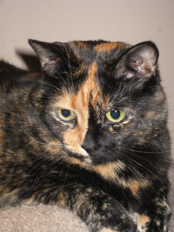 Почему кошки могут быть с черепаховой окраской, а коты нет? Причина в половых хромосомах. Ген, определяющий окраску, сцеплен с Х-хромосомой. У кошек в каждой клетке набор половых хромосом XX, а у котов ХY. На Х-хромосоме находится либо аллель рыжей окраски шерсти, либо аллель черной шерсти. В норме только у кошек могут быть оба разных аллеля одновременно, потому что у них две Х-хромосомы. У котов смешение невозможно. Однако, чтобы понять, как формируется настоящий черепаховый окрас следует заметить, что у самок млекопитающих одна из двух Х-хромосом инактивируется, следовательно все гены, сцепленные с ней, выключаются. Поэтому, если у кошки генотип гетерозиготный, то есть на одной Х-хромосоме аллель черной шерсти, а на второй Х-хромосоме аллель рыжей шерсти, в каждой клетке будет работать только один из аллелей. Рыжие участки шерсти образуются клетками, в которых активна Х-хромосома с рыжим аллелем, а черные, соответственно, там, где работает Х-хромосома с черным аллелем. Механизм инакт