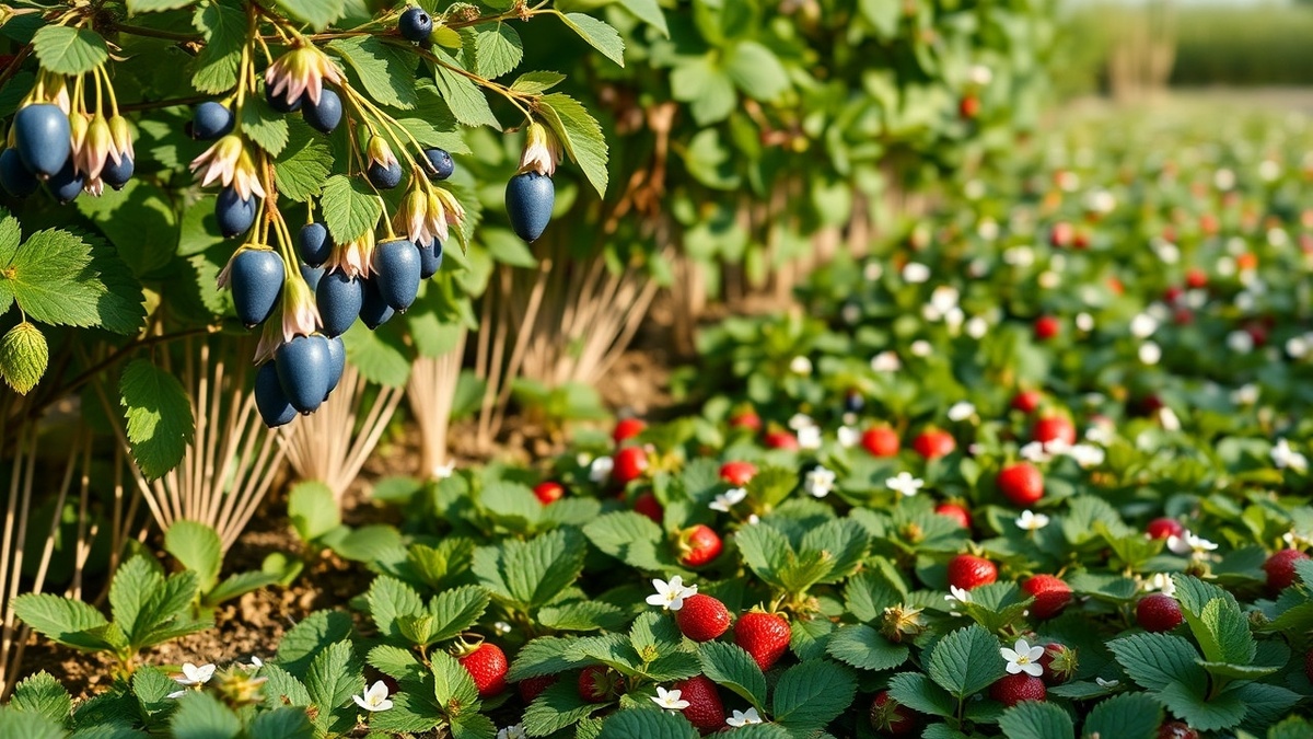 * Жимолость: Это фундамент. Самое неприхотливое растение в мире. Она не боится морозов, не поражается вредителями и созревает на две недели раньше самой ранней клубники. Сажаем 3-4 разных сорта рядом для перекрестного опыления.