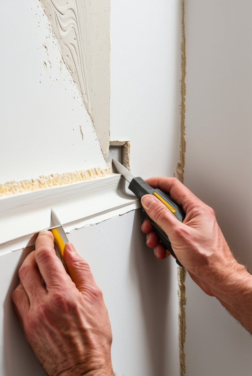 Финальное армирование углов: работа со шпателем для создания ровных углов и их надежная защита углов от повреждений.