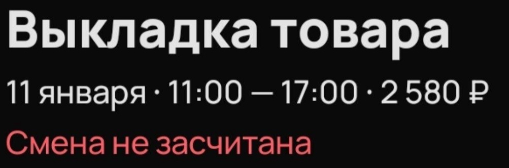 - попросить проставить вам полный день и отменить другому подработчику его часть смены. Вы отработаете 12 часов и это проставят как 1 смена по 12 часов (не 6+6). Работает, если вам отменили вечернюю часть с 16-17 и до закрытия, то есть, вы пришли утром.
