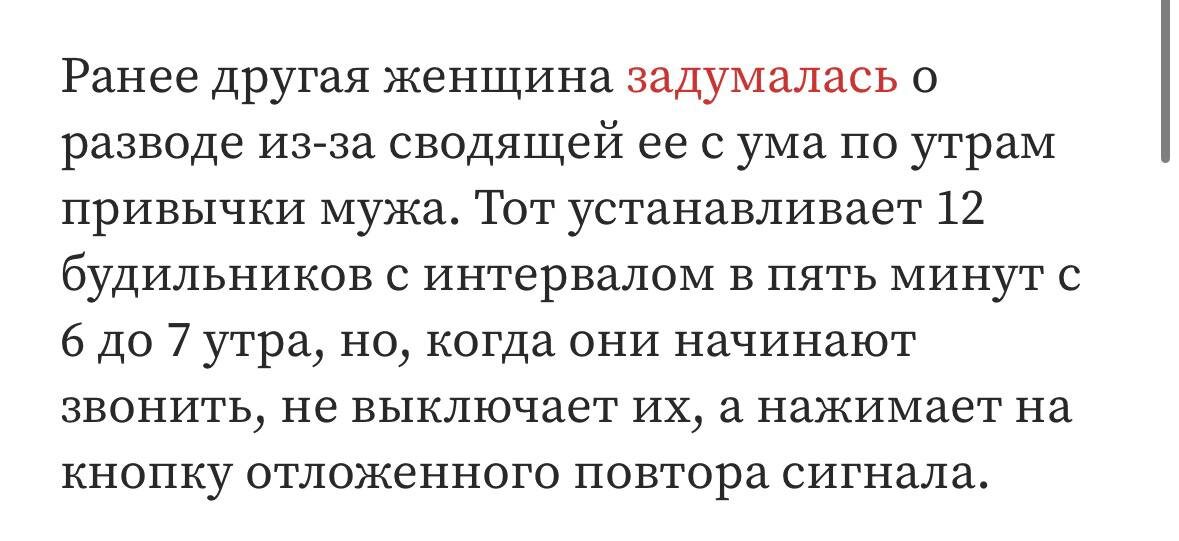 Я пытаюсь донести людям, что измена может стать катализатором роста пары, тем временем рандомная женщина из интернета разводится из-за будильника..
