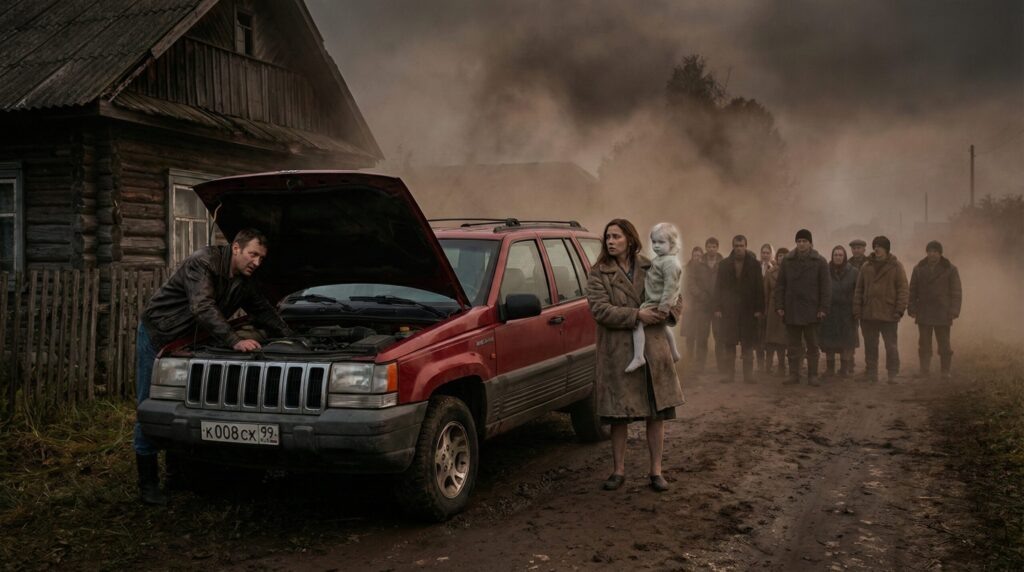 В этот момент за лесом послышался гул. Это был не привычный хрип трактора, а уверенный, басовитый рокот мощного двигателя. Марина замерла, прислушиваясь. Гул приближался, отражаясь от черных стен изб, пока наконец на улицу не выкатился вишневый «Джип» — иномарка, выглядевшая среди покосившихся заборов как гость из космоса.