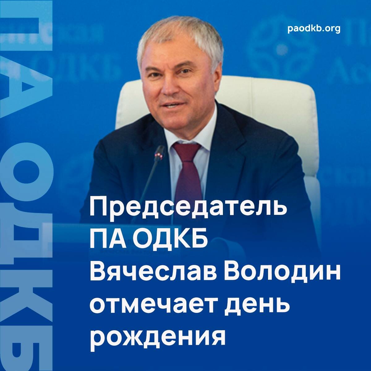 рождения. ✅ «Мы вместе решаем приоритетные задачи в рамках межпарламентского сотрудничества, и главная из них — это гармонизация национального законодательства в сфере безопасности», — отметил Вячеслав Володин на одном из заседаний ПА ОДКБ. 💬Сегодня Вячеслава Володина поздравляют коллеги по Парламентской Ассамблее ОДКБ, а также парламентарии из многих стран мира. 🔴 Сайт 📱 VK 📱 Fb 📱 X 📱 Instagram 📱 dzen
