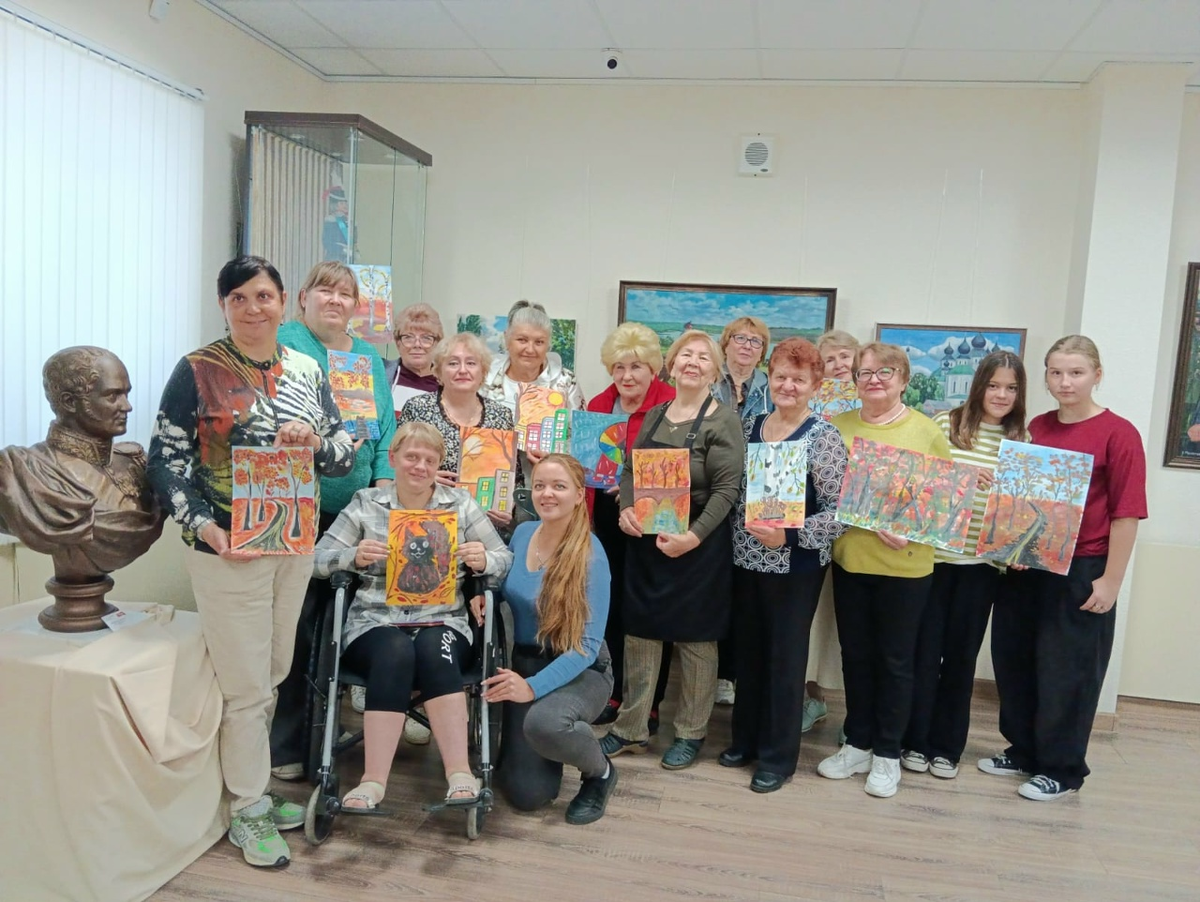 8 октября в п. Каменоломни в Краеведческом музее прошли занятия по проекту: "Инклюзивная студия мультипликации и арт-терапии "Лепестки радуги", поддержанному Фондом Президентских грантов. Мероприятие было проведено совместными усилиями Октябрьского (с) районной организации Всероссийского общества инвалидов ВОИ, сотрудниками музея и РДК. Участники под руководством Кристины Сергеевны Шульга рисовали осенние пейзажи. Гуашь послушно ложилась на бумагу, превращаясь в яркие листья, золотые деревья и лазурное небо. Каждый мазок, каждое сочетание цветов несли в себе частичку души художника. Атмосфера в зале была наполнена теплом и вдохновением. Потом был творческий вечер, посвящённый 130-летию великого поэта Сергея Есенина. Узнали много интересного, вспомнили стихи. В завершения занятия, приятным моментом, стало вручение наград участникам предыдущих мультипликационных проектов "Лепестки радуги". Были вручены дипломы и небольшие подарочки.