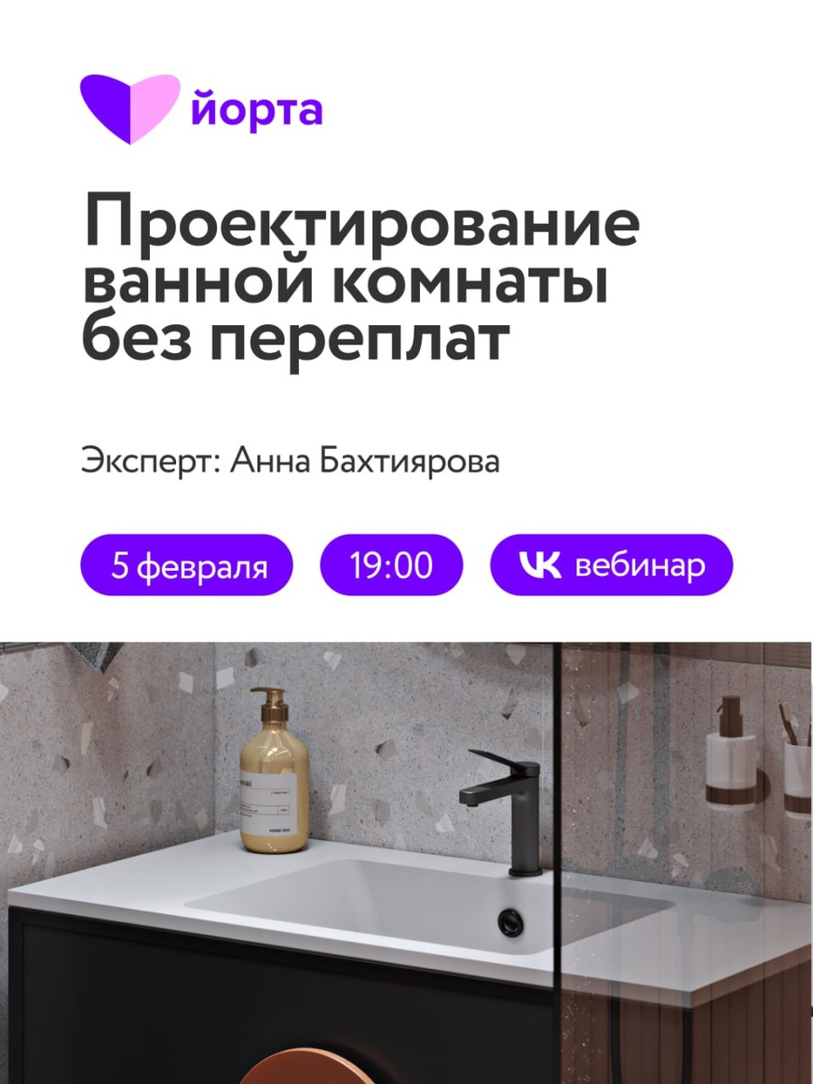 🛠 В нашей группе ВКонтакте пройдёт открытый вебинар «Проектирование ванной комнаты без переплат». 🎤 Спикер — Анна Бахтиярова специалист, который знает, где в ванной «съедаются» бюджеты — и как этого избежать. О чём будем говорить на вебинаре: — где чаще всего переплачивают при проектировании ванной (даже в дорогих проектах); — какие решения выглядят «дизайнерски», но по факту не стоят своих денег; — как грамотно спланировать ванную под реальные размеры, а не под картинки из Pinterest; — на чём можно и нужно экономить, а где экономия потом выходит боком; — как собрать функциональную, красивую ванную без хаоса и переделок. Почему стоит смотреть: — практично, без воды и теории «ради теории»; — подходит и для тех, кто делает ремонт себе, и для дизайнеров; — после вебинара вы по-другому посмотрите на планировку и комплектацию ванной; — меньше ошибок → меньше лишних трат → больше удовольствия от результата. 🗓 5 февраля в 19:00 📍 Онлайн, в нашей группе ВКонтакте