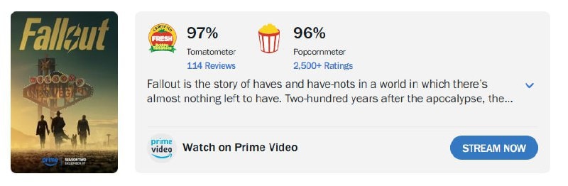🎬 Рубрика: Технологии Финал второго сезона Fallout вышел, и все 8 серий уже можно найти в «бесплатных» кинотеатрах. 🎥 Сериал собрал множество восторженных отзывов и считается самой успешной экранизацией игры в истории. По некоторым параметрам он даже обогнал «Одни из нас». Рейтинг Fallout 2 на Rotten tomatoes — 97% свежести. 🏆 Сериал не просто повторил успех первой части, но и превзошел ожидания фанатов. Сюжет, актерская игра и визуальные эффекты — всё на высоте. Сегодня смотрим и обсуждаем. 💥 Fallout 2 доказал, что экранизации игр могут быть не только коммерчески успешными, но и художественно значимыми. Если вы еще не начали смотреть, самое время наверстать упущенное. 🕶️ #Fallout #Сериалы #Экранзации #Rotten_Tomatoes #Технологии Читать на сайте ➡️ Подписаться