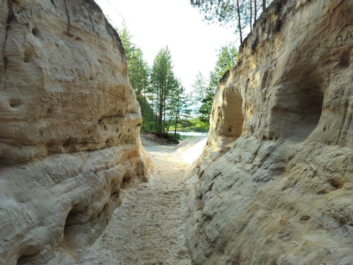 В окружении сосен, на берегу затопленного карьера, который теперь считают озером, затаился этот природный объект. Малый Лужский каньон возник из обычного лесного ручейка. Совсем крохотный поток воды за несколько десятков лет создал настоящее чудо. Высота каньона более шести метров, длина — 20. Его стенки покрыты белоснежным кварцевым песком. Конечно, он не такой величественный как в Аризоне, но его красота так же заслуживает внимания. Исследователи этого уникального места говорят: здесь можно прочесть геологическую историю нашей планеты.