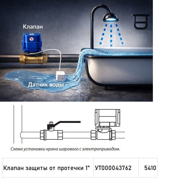 Одной из них является протечка воды. Она может быть связана с износом труб, или неисправностью запорной арматуры, или потерей контроля за открытыми кранами. Если вы хотите надёжно защитить своё и чужое (в случае наличия соседей) имущество, то с такой задачей должны справиться специальные системы для защиты от протечек воды. Какой бы ни была компоновка, принцип работы систем по защите от протечек почти всегда один и тот же: -Датчик обнаруживает утечку воды и посылает сигнал в блок управления. -Блок управления отправляет сигнал на блокирующий кран (активирует его). -Подача воды прекращается, благодаря этому ликвидируется более масштабное затопление. На нашем складе всегда есть в наличии клапаны защиты от протечки.