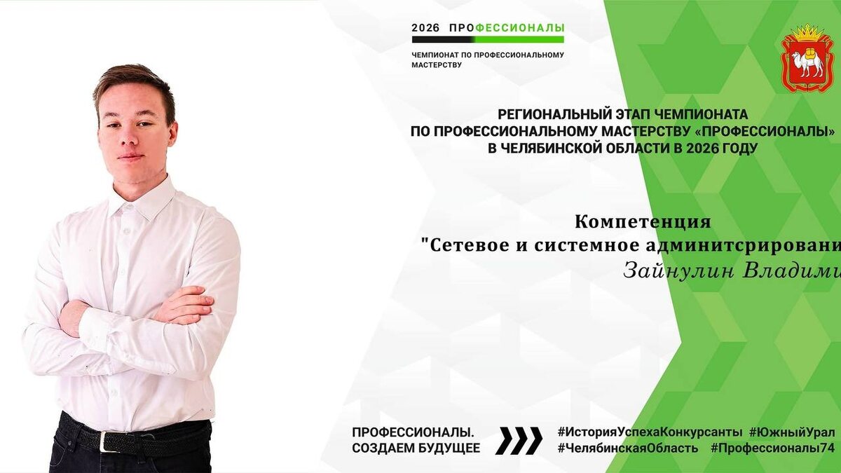 Наш следующий конкурсант — Зайнулин Владимир будет соревноваться в компетенции «Сетевое и системное администрирование