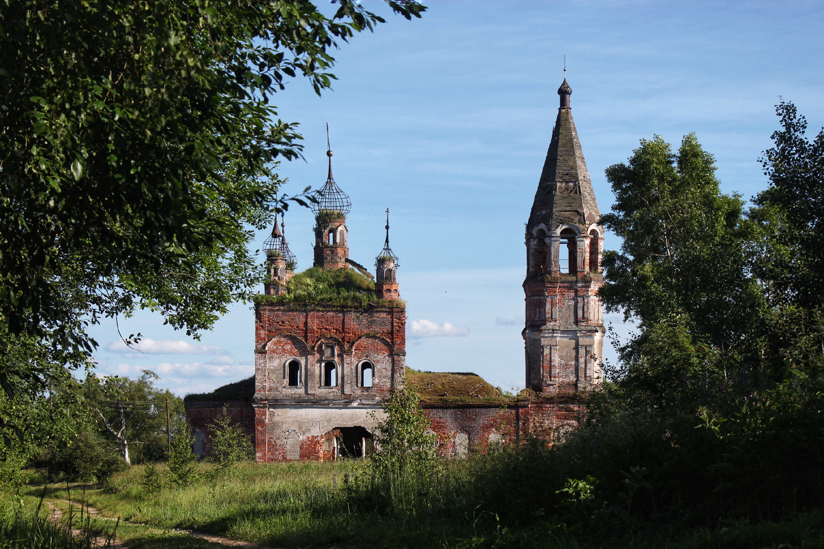 Чуть в стороне от центральной улицы виднеется культовый памятник- разрушенная Рождественская церковь, возведенная в камне в 1781 г.