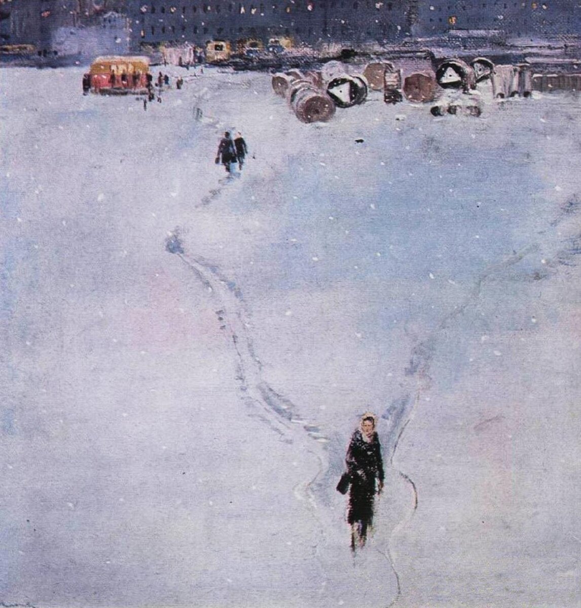 «Тропинки к автобусам». Из серии «Новые кварталы», Юрий Пименов, 1966