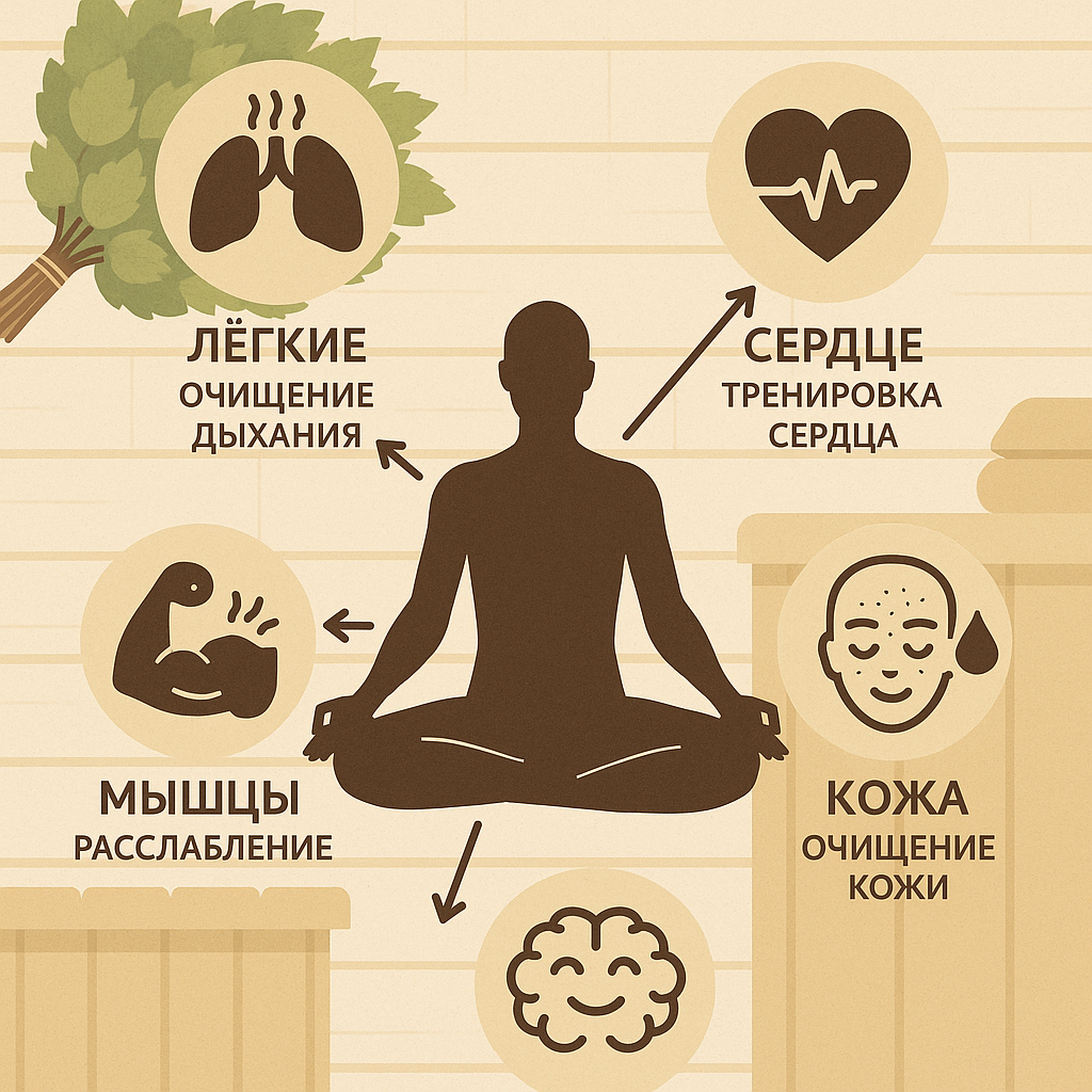 Представьте себе гигантскую природную ингаляцию. Горячий пар прогревает дыхательные пути, усиливает кровоток в слизистых, а если вы капнули на камни эфирного масла эвкалипта или кедра — вы превращаете парную в лечебную камеру. Это лучшая профилактика сезонных простуд и чистка лёгких для городских жителей. Организм, тренируясь терпеть жар и холод (об этом дальше), становится крепче и учится отбивать вирусные атаки. 2. Кардиотренировка без тренажёров