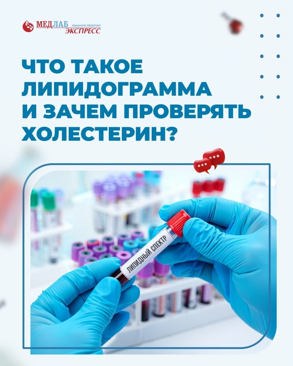 Определяются следующие показатели: - Общий холестерин — главный маркер липидного обмена. - Липопротеины низкой плотности (ЛПНП, «плохой» холестерин). - Липопротеины высокой плотности. - Триглицериды — основной источник энергии, но при избыточном количестве могут повышать риск сердечно-сосудистых проблем. Зачем нужен холестерин? Холестерин жизненно необходим организму: - участвует в построении клеточных мембран, - синтезе гормонов (в том числе половых и кортизола), - производстве витамина D, - формировании желчных кислот для пищеварения. Липидограмма помогает: - выявить скрытые нарушения обмена жиров, - своевременно оценить риски для сердца и сосудов, - принять меры для профилактики атеросклероза и его осложнений. 👉Липидный спектр можно сдать в любом удобном пункте лаборатории «МедЛабЭкспресс»: Информация носит справочный характер. Требуется консультация специалистов.