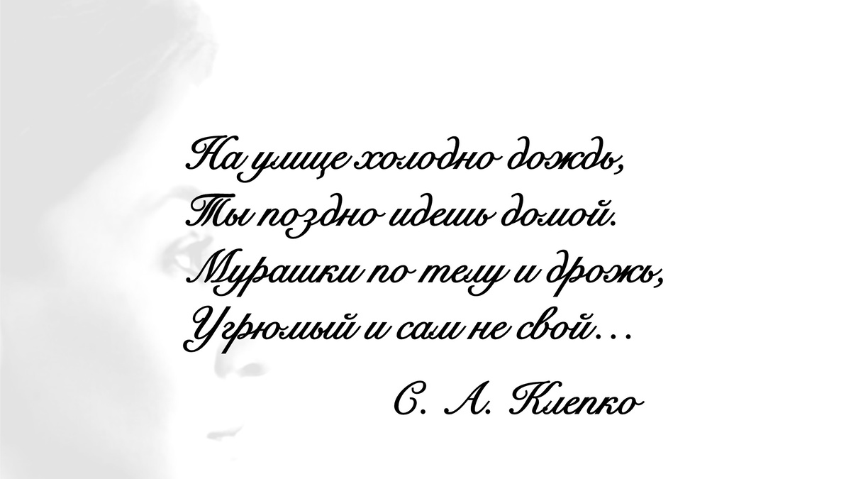 Автор С. А. Клепко *** На улице холодно дождь, Ты поздно идешь домой. Мурашки по телу и дрожь, Угрюмый, и сам не свой. Промокшее насквозь пальто, И листья прилипли к ботинкам. Сегодня тебе всё равно, Разрушилась мира картинка. Ты с кофе, а может быть сигарета, Тлеет от ветра быстро. Но раздражает даже не это, А в спину контрольный выстрел. Неважно, что было до, В моменте сделали выбор. И большего не дано, Это часть человеческих игр. __________________________________________________________________________________________ * Все права защищены. Воспроизведение любой части стихотворения, в какой бы то ни было форме и какими бы то ни было средствами, возможно только с указанием автора. __________________________________________________________________________________________ Мои стихотворения собраны в подборке ПОЭЗИЯ. Социальные сети: #культура #искусство #стихи #поэзия #творчество #философия #klepkosa #клепко #стихиодружбе #любовь #предательство #разочарование #женщинапоэт #современ