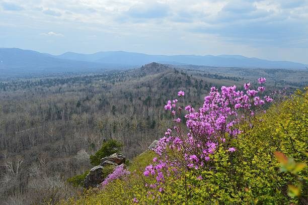 Рододендрон даурский зацветает раньше большинства кустарников. Его ветви покрываются нежно-розовым облаком еще до появления листьев. Растение выдерживает экстремальные морозы до сорока градусов. В ландшафте группа таких кустов создает эффект раннего цветения. Сад оживает, когда на других деревьях еще лежат остатки снега.