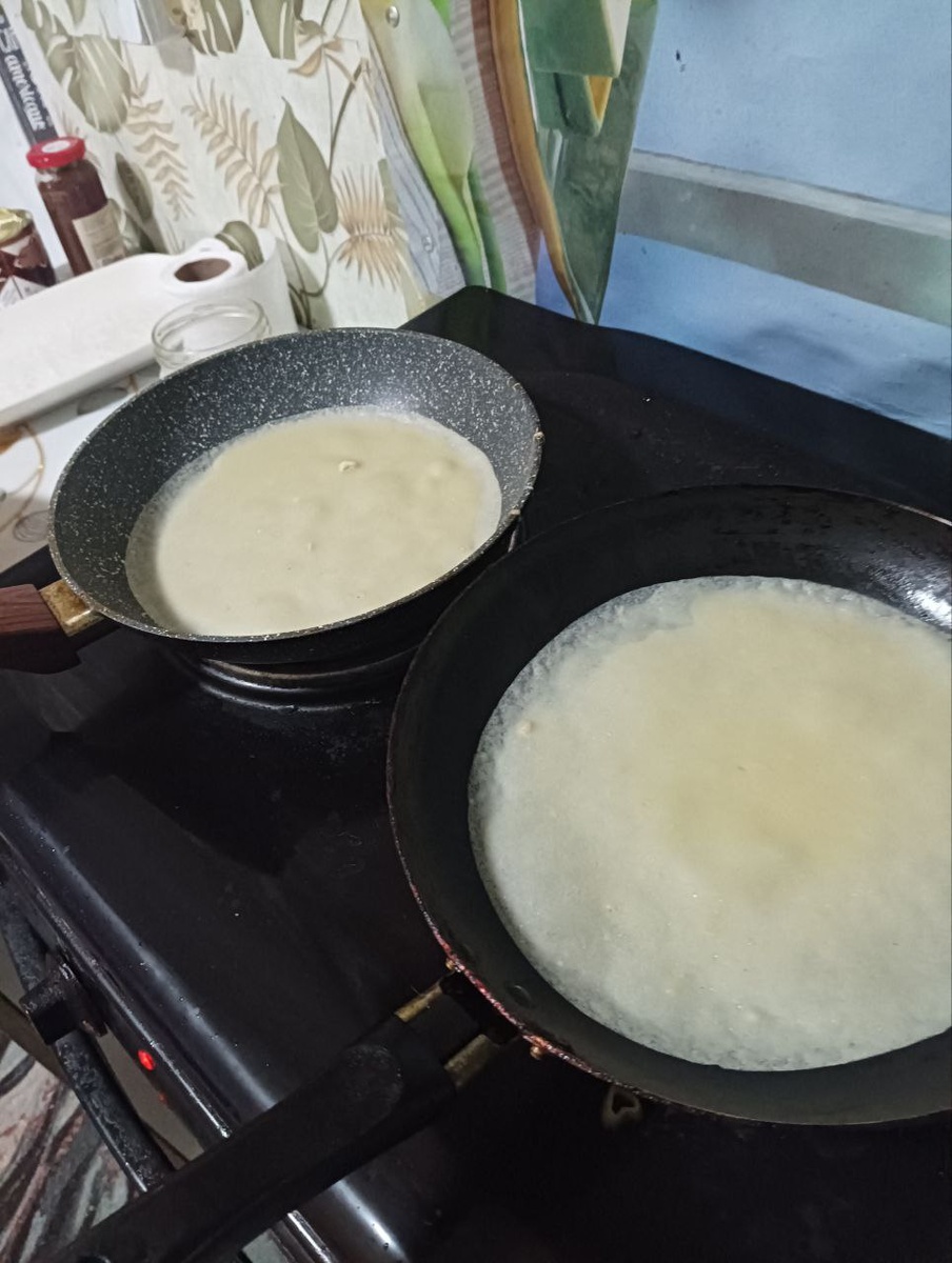 Блины готовы: половина со сгущенкой, половина без начинки.