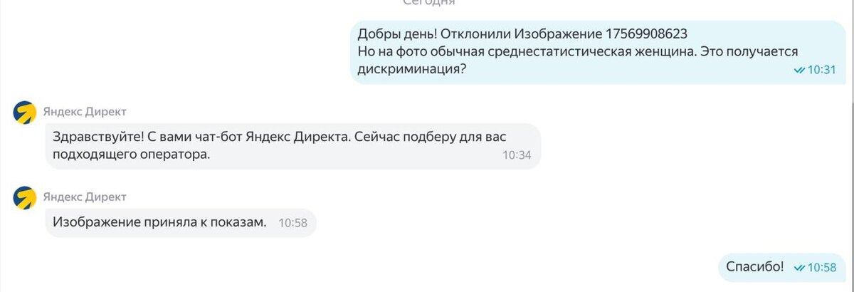 Запустила в рекламу макет, где женщина 40+, обычная, в домашней обстановке и домашнем костюме. Ничего такого ужасного. И это изображение модератор отклонил как "Неприятный контент". Но радует, что женщина модератор приняла объявление без лишних вопросов. Но такое у меня впервые случилось, если честно. Обычно если отклоняют объявления - то по делу.