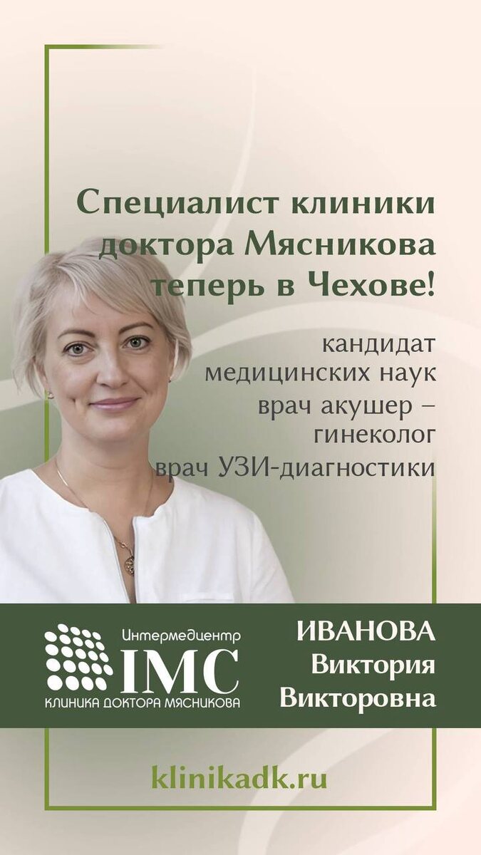 ! 🌟 Иванова Виктория Викторовна, кандидат медицинских наук, опытный врач-гинеколог, онколог 🌟 Приглашаем вас на консультацию к высококлассному специалисту с огромным опытом работы в области женского здоровья! ✅ Прием кандидата медицинских наук, врача-гинеколога Ивановой Виктории Викторовны в нашей клинике стоит всего 3500 рублей. ✅ Комплексный прием с проведением ультразвукового исследования обойдется вам в 4800 рублей. Доктор Иванова зарекомендовала себя как высококвалифицированный специалист, обладающий глубокими знаниями и современным взглядом на диагностику и лечение заболеваний женской репродуктивной системы. Она регулярно повышает свою квалификацию и внедряет новейшие методы диагностики и лечения, что позволяет ей достигать отличных результатов даже в сложных случаях. Почему именно наша клиника? - Современное оборудование и комфортные условия приема. - Индивидуальный подход к каждому пациенту. - Надежность и конфиденциальность всей медицинской информации. Записывайтесь пр