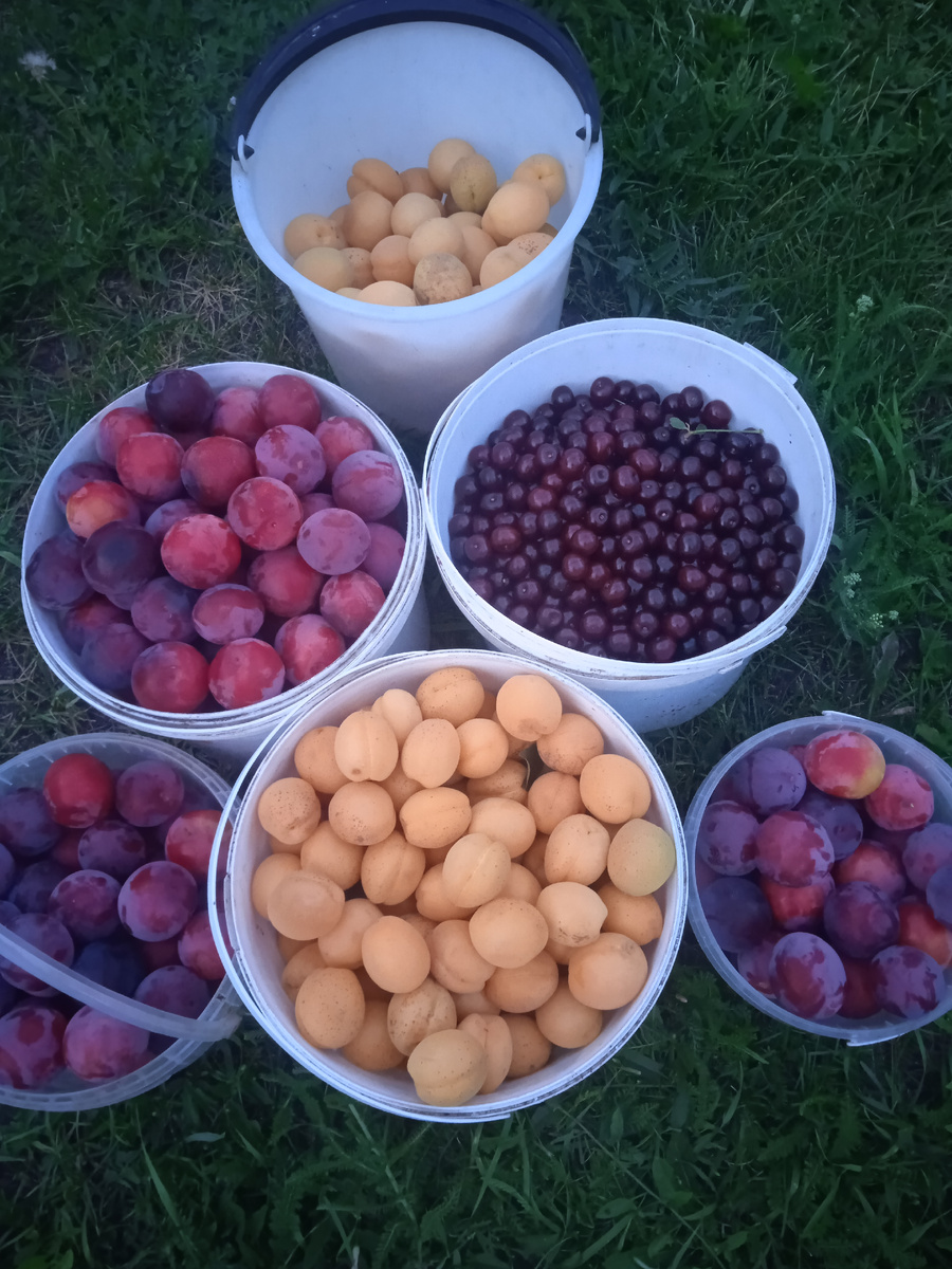 В этом году урожай был шикарный. Клубника, черешня рано начали спеть. Я периодически выкладывала ни просто свои ягоды в статусе, а ведра с собранным урожаем.