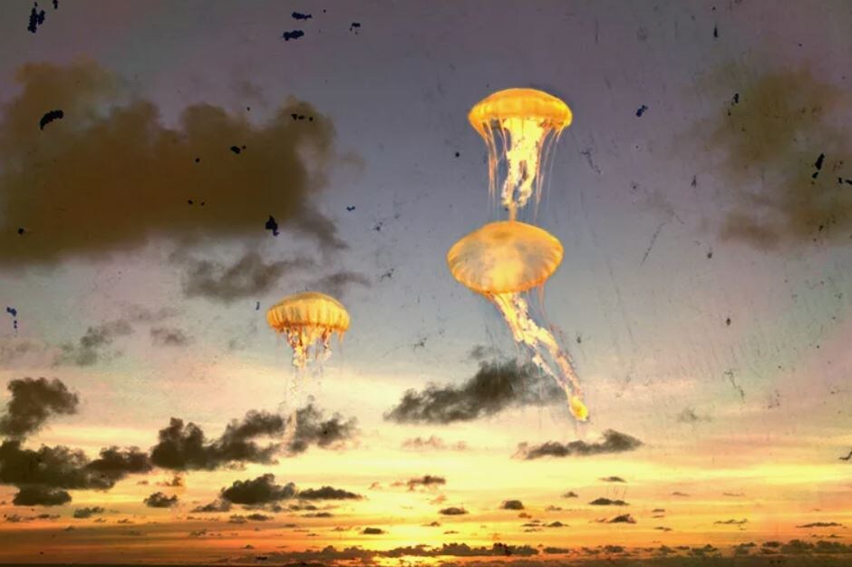 Летающие медузы упомянуты в данном случае лишь как часто, наряду с гигантскими пауками, появляющийся в фантастических произведениях мотив. Понятно, что животные с аэростатическим принципом движения могут населять только миры с очень плотной атмосферой. Тогда как «гигантские пауки» вообще родом из глубин подсознательного, – даже в гипотетической атмосфере им делать нечего… А вот почему даже на планетах с атмосферой плотности достаточной, чтобы сделать парение на наполненном водородом пузыре возможным, летающих медуз, всё-таки, не будет, – менее понятно.