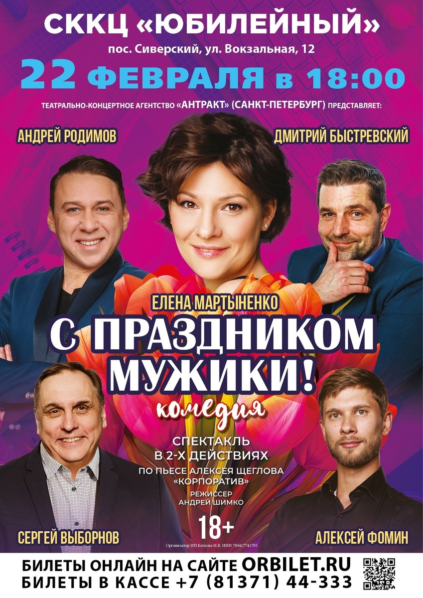 ! Приглашаем вас в МБУК СККЦ "Юбилейный" на спектакль - комедию "С праздником, мужики!" по пьесе А. Щеглова "Корпоратив". Заказать билеты вы можете онлайн, по ссылке https://orbilet.ru/event/16490 Наш канал в Max, вступайте Источник: Открыть