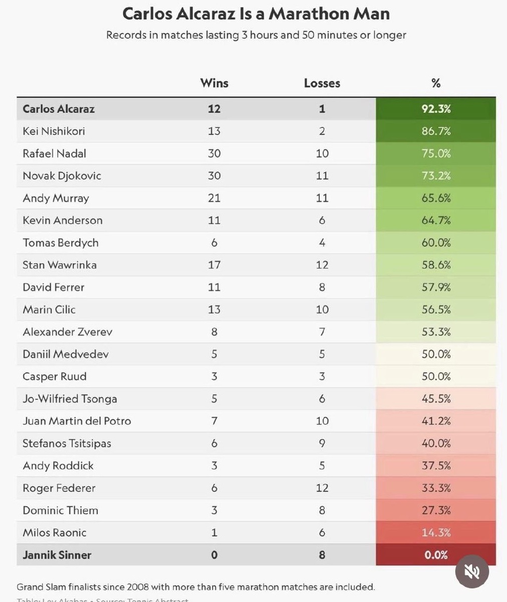 Карлос Алькарас — настоящий марафонец 🏃♂️