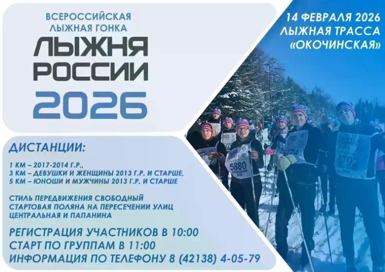 ⛷ Друзья, любители лыжных гонок! Приглашаем вас 14 февраля на Всероссийскую лыжную гонку «Лыжня России 2026». Дистанции: 1 км – для участников 2017-2014 годов рождения. 3 км – для девушек и женщин старше 2013 года. 5 км – для юношей и мужчин старше 2013 года. Регистрация с 10:00. Старт по группам в 11:00. Стиль передвижения свободный. 📍 Стартовая поляна на пересечении улиц Центральная и Папанина. 📞 Вопросы по телефону: 8(42138)4-05-79. Чтобы принять участие, зарегистрируйтесь на портале «Госуслуги» (https://www.gosuslugi.ru/600563/1/form?eventsNumber=4573). «Лыжня России-2026» проводится в рамках Года спорта, объявленного губернатором Хабаровского края Дмитрием Демешиным. Это событие соответствует задачам государственной программы «Спорт России». Программа направлена на развитие спортивной культуры и массового спорта. Приходите, чтобы проверить свои силы, насладиться зимней природой и стать частью спортивного праздника!