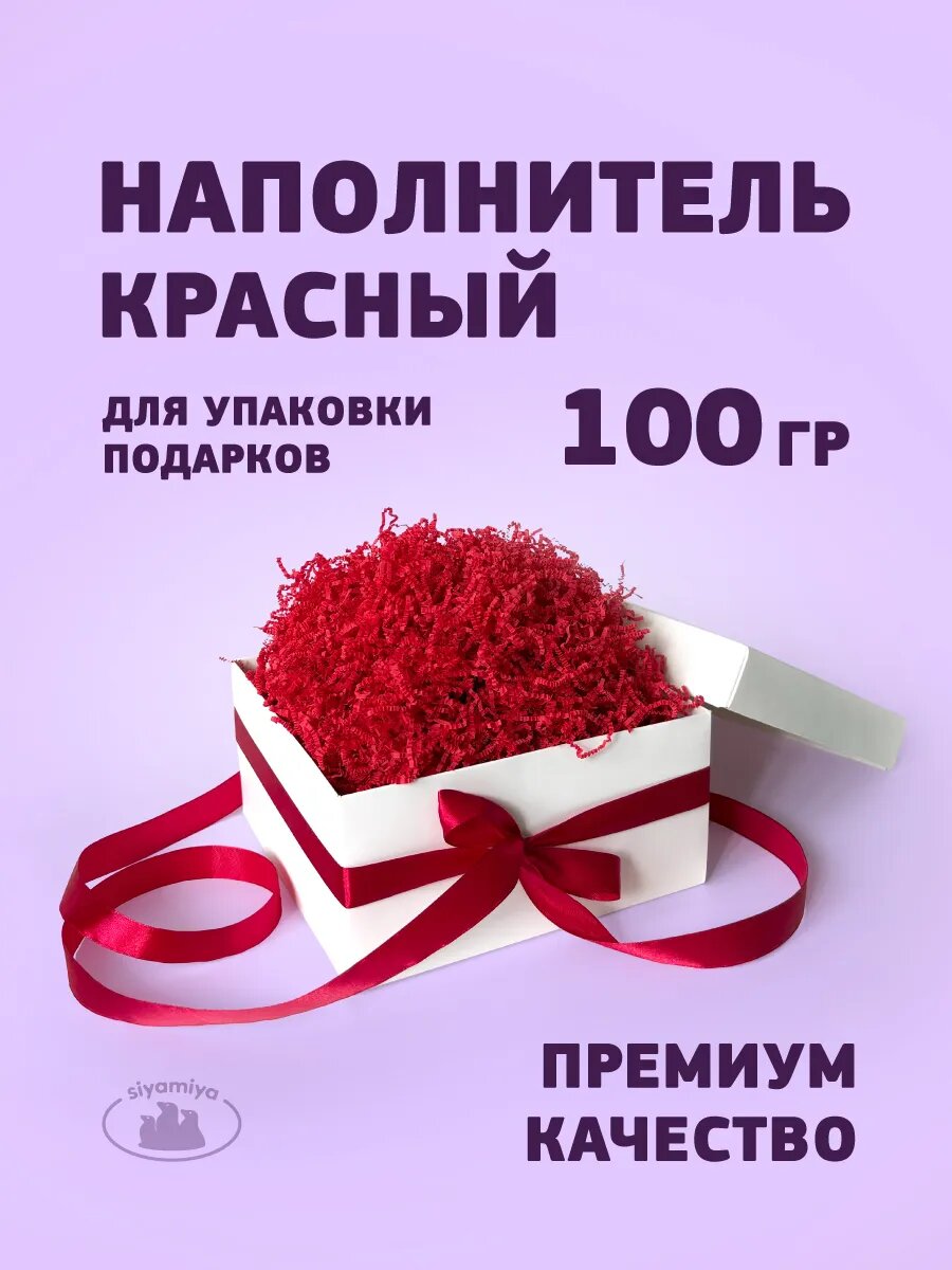 Яркая красная бумажная стружка из плотной гофрированной бумаги, которая не пылит и легко расправляется. Всего 100 граммов такого наполнителя достаточно, чтобы создать пышный, праздничный объем в нескольких подарочных коробках.