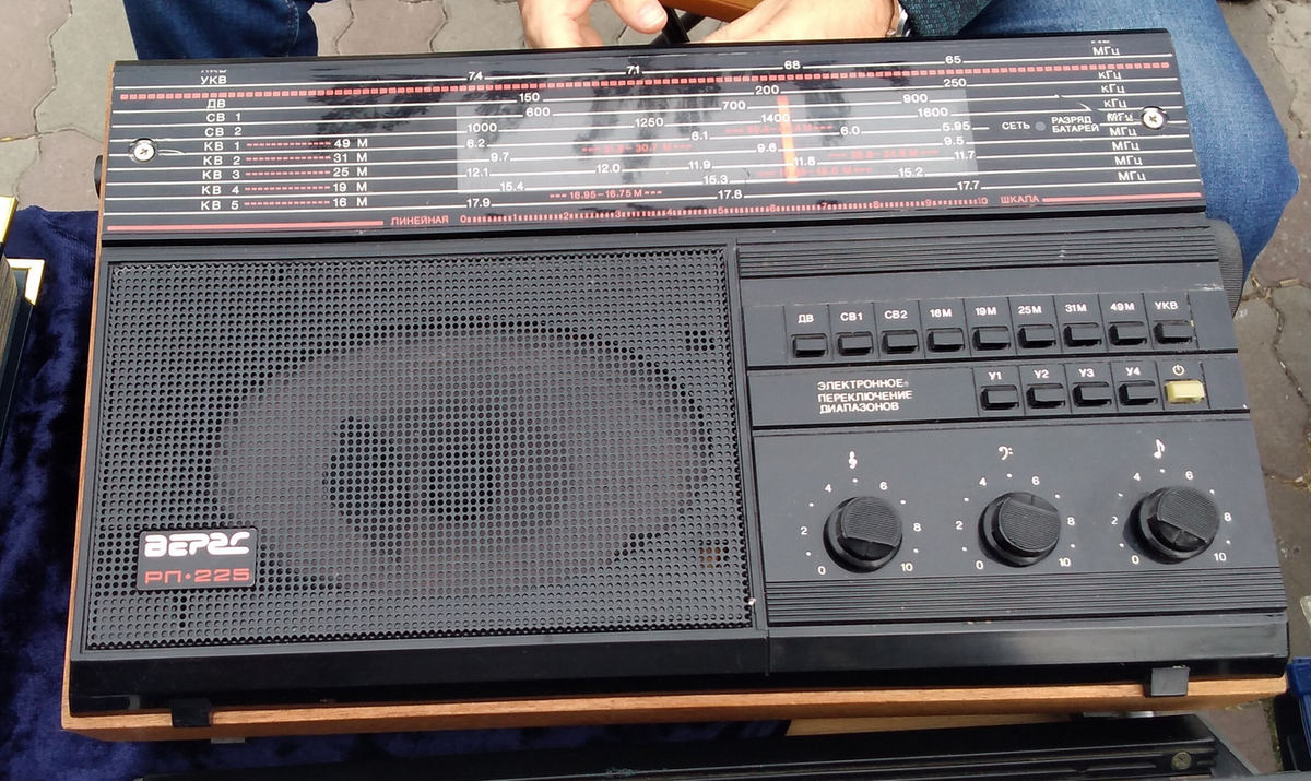 Добрый день дорогие друзья. В предыдущем обзоре «Что радиолюбители интересного могут найти и купить на барахолке. Ноябрь 2025 г.», я писал о причинах задержек в публикациях на моем канале, повторяться не буду, кому интересно могут посмотреть там. И так вот получилось что сейчас уже февраль, а я еще не все про ноябрь рассказал, но сегодня это исправлю. Единственная проблема, что в этом обзоре за давностью рассматриваемых событий, я могу не совсем корректно назвать цены. А теперь давайте посмотрим, что я интересного увидел на барахолке во второй половине ноября 2025 г. Хочу сразу предупредить, что некоторые выставленные на барахолке экземпляры товаров, продаются не сразу, а таскаются на барахолку месяцами, а то и годами, поэтому их фото и описание могут в моих обзорах иногда повторяться. И как всегда мы начнем наш обзор с больших советских радиоприёмников. Первым у нас будет радиоприёмник Верас РП-225 в очень хорошем внешнем состоянии и с целой антенной и по утверждению Продавца в рабо