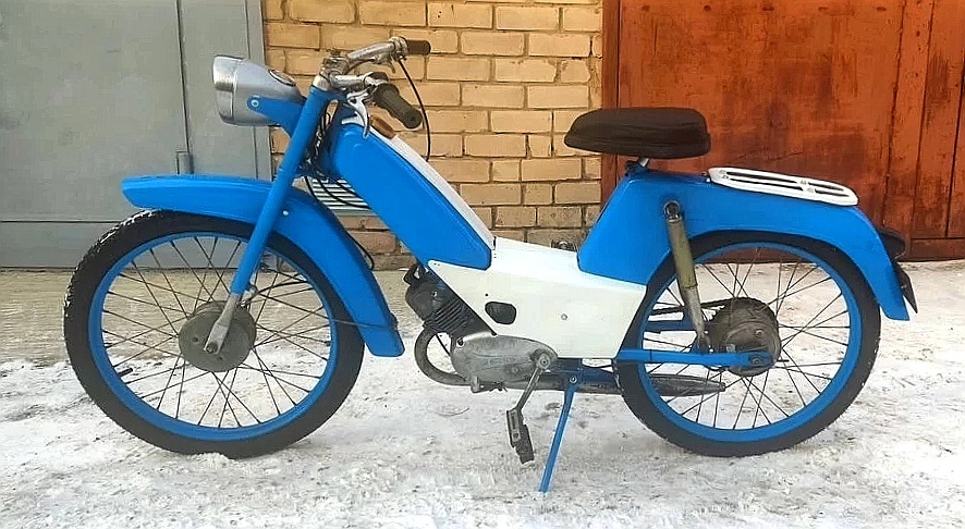 · Оснащение — у мопеда было всё необходимое: спидометр, фара, зеркало заднего вида, багажник и даже свой набор инструментов для ремонта в дороге.