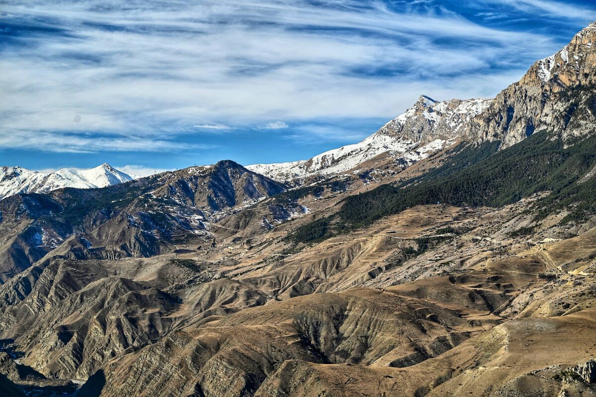 Завораживающие виды Алагирского ущелья: на долину реки Ардон, юго- восточные склоны Скалистого хребта, высокие снежные вершины Кальперского