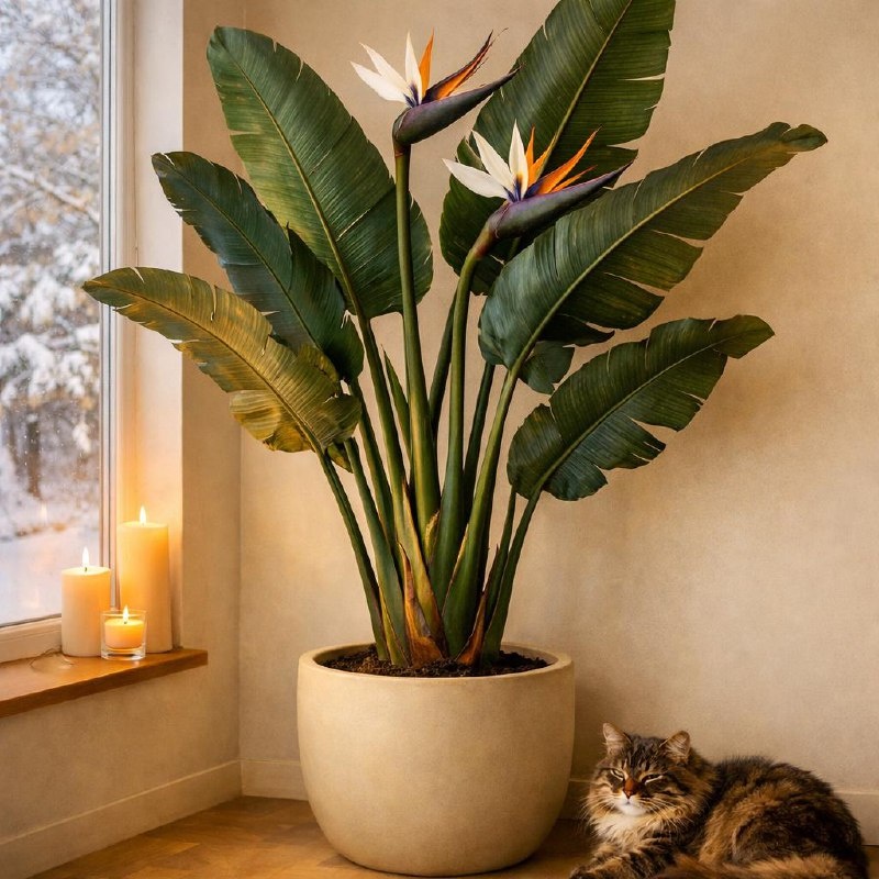 !) 🌿 Стрелиция Николая — эффектное тропическое растение, которое часто называют «белой райской птицей». 🍀Это не цветок в привычном понимании, а мощный декоративный акцент для интерьера. 💚Ее главная красота — в крупных, плотных листьях, похожих на банановые, с выразительной графикой и живой фактурой. 🌱 🌿Стрелиция символизирует свободу, рост и внутреннюю силу. ☘️Она быстро притягивает внимание и задаёт пространству статусный, архитектурный характер. В домашних условиях цветёт редко, но ценится именно за форму и масштаб. ☀️ 🍀Растению нужен свет, простор и стабильность: яркое рассеянное освещение, умеренный полив и высокая влажность. ☘️Это выбор для тех, кто любит крупные формы, минимализм и эффект «вау» без лишнего декора. 🪴 #стрелиция🌷#тропическиерастения #растениявинтерьере #зелёныйдекор