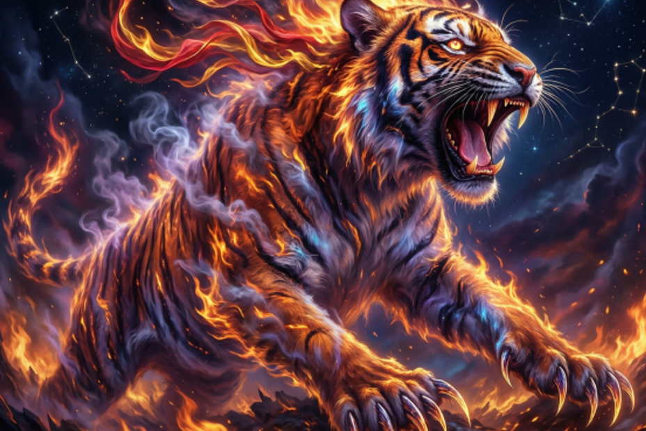 Они видели, как огненный вихрь закручивался в форме мистической мандалы, а затем — в облике гигантского тигра.