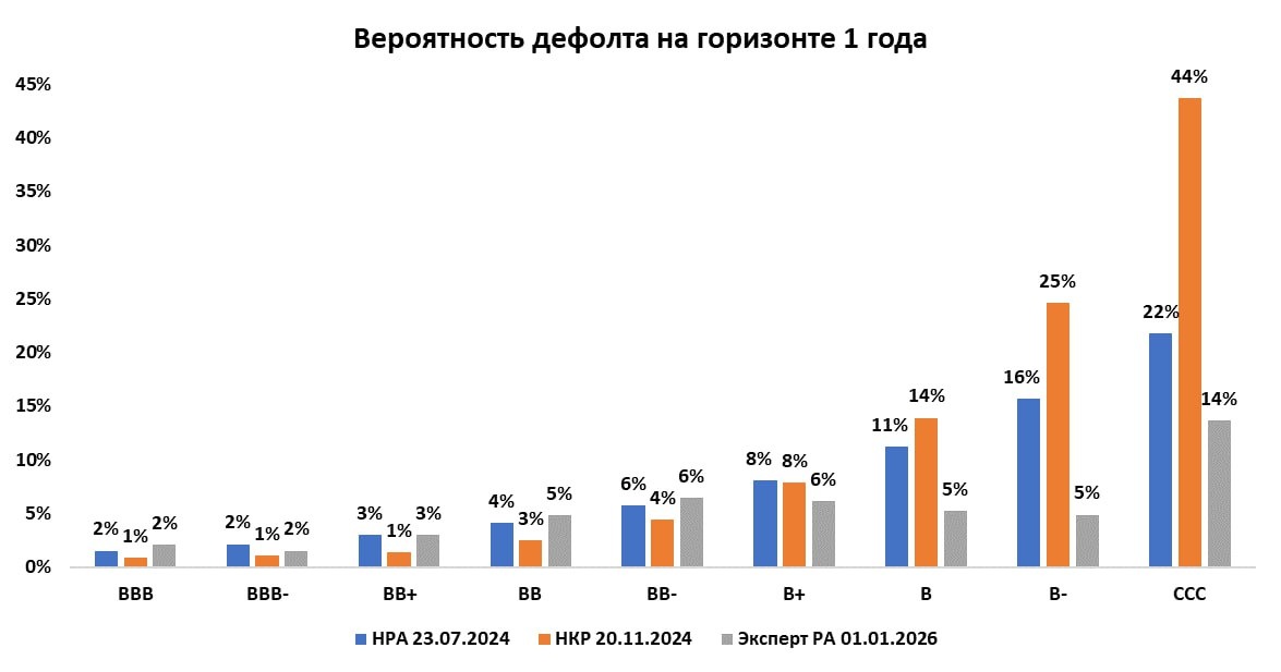 Оценки вероятностей дефолтов от российских рейтинговых агентств