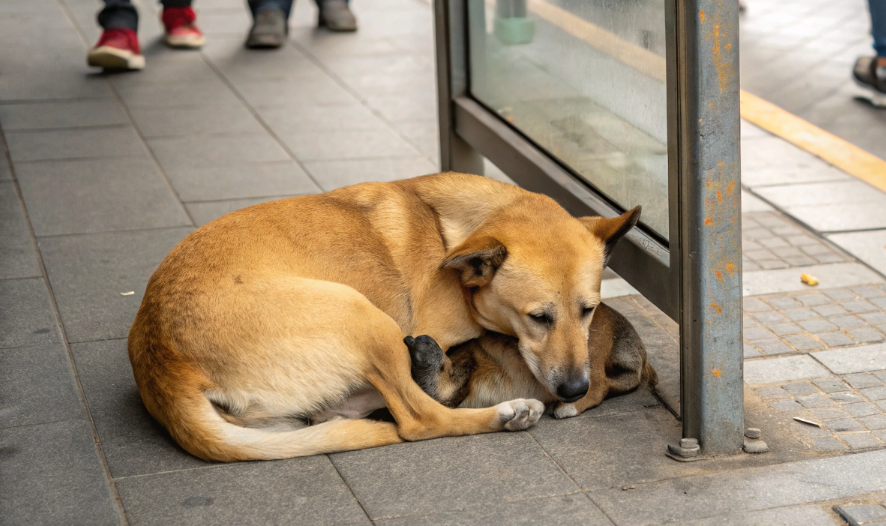 На асфальте, прямо у скамейки, лежала собака. Большая, рыжая, вся в комьях грязной шерсти. Рёбра торчали так, что страшно смотреть. Глаза закрыты. Дышит? Вроде да. Едва-едва.