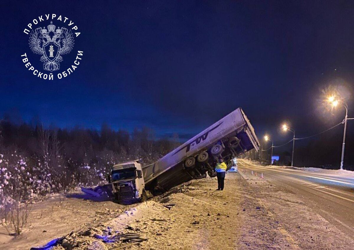 Фура столкнулась с легковушкой и улетела в кювет в Тверской области: погибли два человека